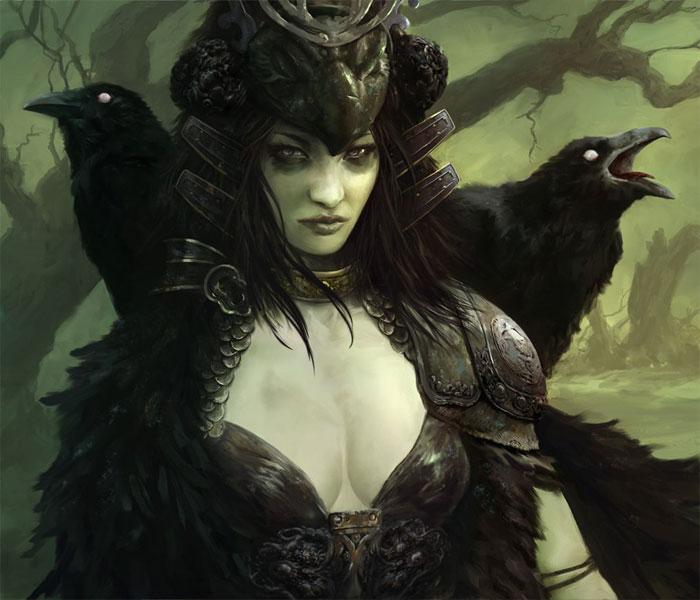 Символика воронов в кельтской мифологии очень близка к скандинавской. Птица сопровождает Брана Благословенного, легендарного хранителя Британских островов, Ольхового воина. Этот образ могла принимать богиня Морриган – в таком виде, она сидит на плече у своего возлюбленного, легендарного героя с семью зрачками. Друиды обозначали символом ворона места особенно важных ритуалов.
